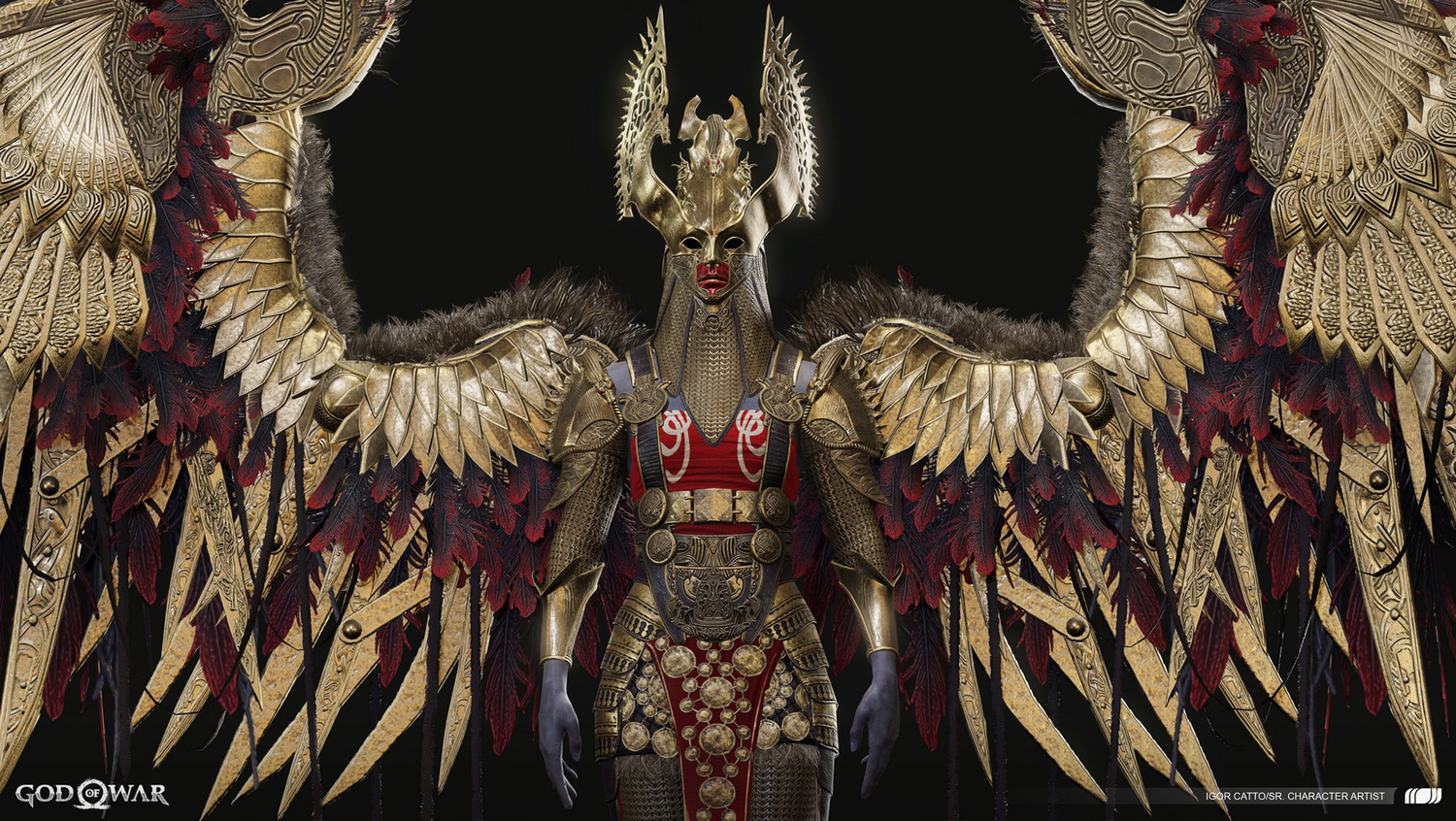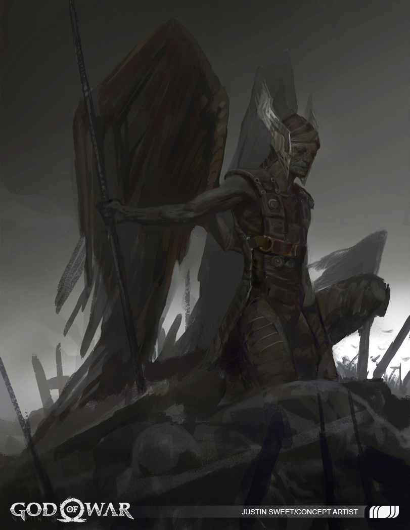 Our team was also told early on that the Valkyries would be the hardest bosses that players would face in the game. Principal character artist, Raf Grassetti, recollected, “We knew that the Valkyries were there more to challenge the players and test their skills as optional bosses. So, that’s one of the initial directions that got reflected in the design too.” Both gameplay and lore affected the final character design - a collaborative process common throughout the development of our game. “Even game designers breaking down all the different classes and how they were going to work, this was such a big character that it took a long time.”