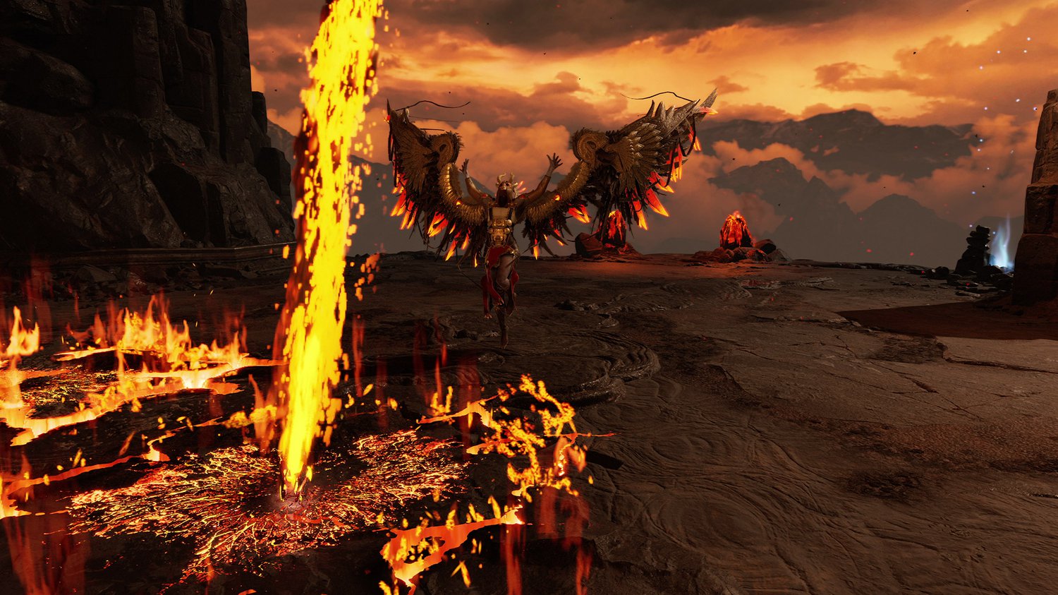 Unlike the previous Valkyries, Gondul was themed around an elemental affinity to fire. However, that alone isn't enough to make a fight feel different. A lot of things can be fire based. If she just shot fireballs, for example, that wouldn't feel any different than Geirdriful's chakrams. We had to find a way to communicate that fire affinity through gameplay rather than just visuals.