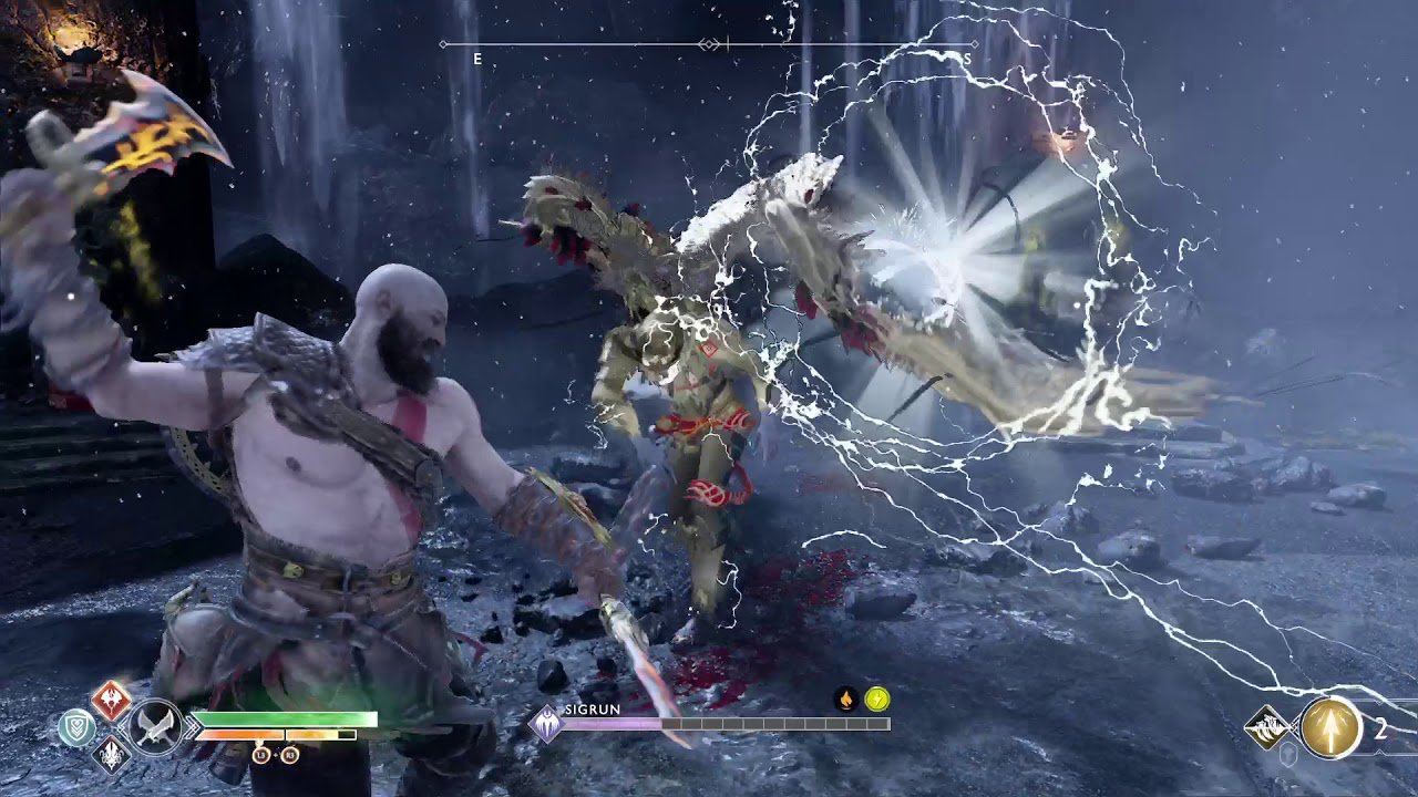 Knocking her down with the son's arrows is the easiest option, but it doesn't stun the Valkyrie long enough to follow up with additional hits. If players want to deal more damage, they must use the slower and riskier axe throw instead. This kind of design gives the Valkyrie a more flexible difficulty level. If you're not confident in your axe throw abilities, you have the option of just using the son's arrows. However, it won't be as effective.